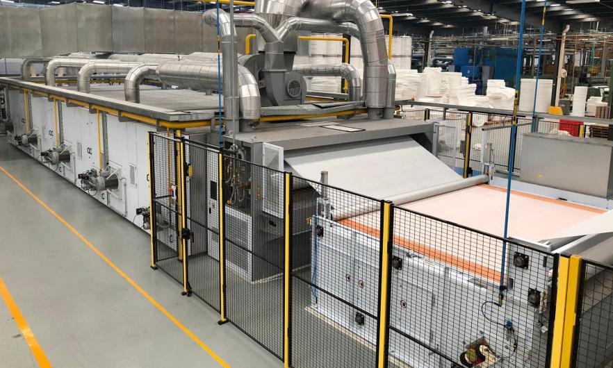 - Durchström-Doppelbandöfen zur Thermofusion von High-loft Vliesstoffen wie Matratzen, Isoliermaterial, Sitzbezüge, Polsterstoffe