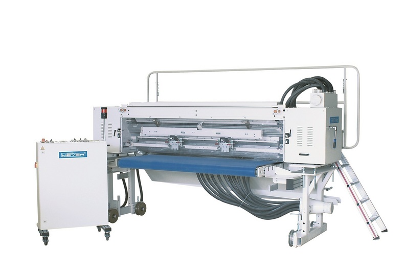 MEYER Flachbett-Kaschier-Anlagen sind Doppelbandpressen mit integrierter Kontaktheizung und Kühlung. Die zu kaschierenden Materialien werden dabei schonend erwärmt. Durch die Länge der Heizzone ergibt sich eine relativ lange Verweilzeit in der Kaschierpresse, was zu einer optimalen Verklebung mit hohen Haftwerten führt. Unmittelbar nach der Heizzone kann das Kaschiergut mit den Kalanderwalzen verpresst, oder auf eine gewünschte Endstärke kalibriert werden. Um diesen Verbund zu stabilisieren, wird das Kaschiergut noch innerhalb der Kaschieranlage abgekühlt. Durch den flachen Durchlauf und der präzisen Höhenverstellung können auch feste Platten, bis zu einer Materialstärke von 150mm kaschiert werden.