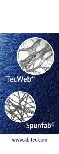 Spunfab ist Hersteller von thermoplastischen Klebstoff-Webs in Rollenform (basierend auf PA, PES PO, PP, PU, EVA und andere) zum Kleben und Laminieren von Materialien. Bestehend aus 100 % thermoplastischen klebenden Polymerharzen, hitzeaktivierbar, trocken, atmungsaktiv, flexibel und lösungsmittelfrei. Das einzigartige Spunfab Herstellungsverfahren basiert aus über 30 Jahren Erfahrung als Polymerforschungs- und entwicklungsunternehmen.