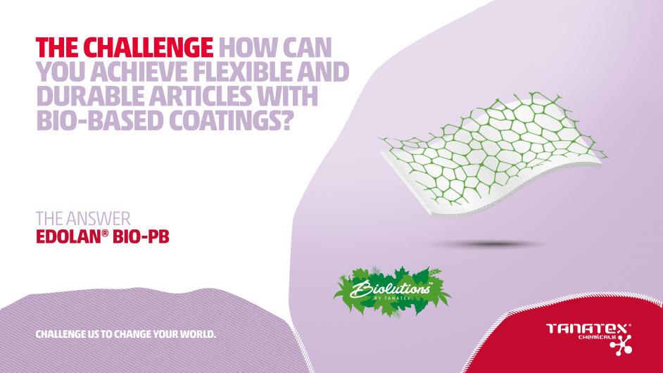 EDOLAN® Bio-PB is a 50% solids bio-based aliphatic polyester polyurethane dispersion. The bio-based content is 56%. EDOLAN® Bio-PB is suitable as basecoat on several different substrates ranging from cotton, polyester, and polyamide.
