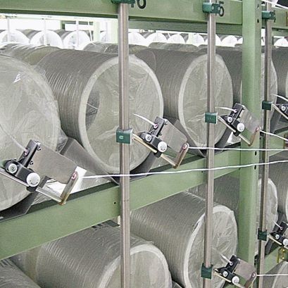 Bei der Bauform mit liegenden Rovings gibt es keine gatterbedingten Stillstände. Das Rovings lässt sich bei laufender Anlage mit dem Anfang des Ersatzrovings verbinden.