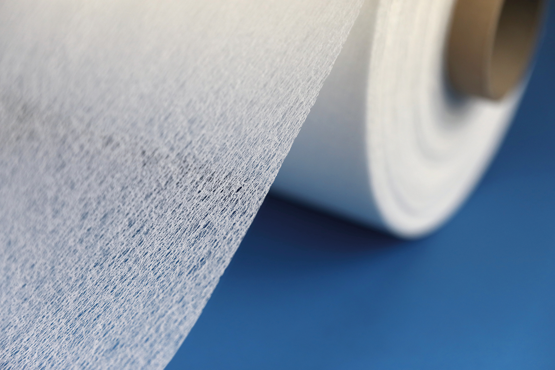 As standard, the dry thermoplastic TecWeb® is delivered on a roll without foil or silicone paper. On customer request, delivery on a carrier is possible. TecWeb® adhesive is not a film with a closed surface, but a porous three-dimensional structure. The open structure makes the resultant laminate more flexible and breathable. Due to the structure of TecWeb® adhesives, other names such as veil, non-woven, nets or fleece adhesive are common.