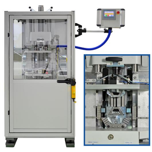 The rotational impact tester is used for impact tests. These highly dynamic tensile tests with a long linear test path are applied, for example, in the testing of fibre composites and technical textiles.