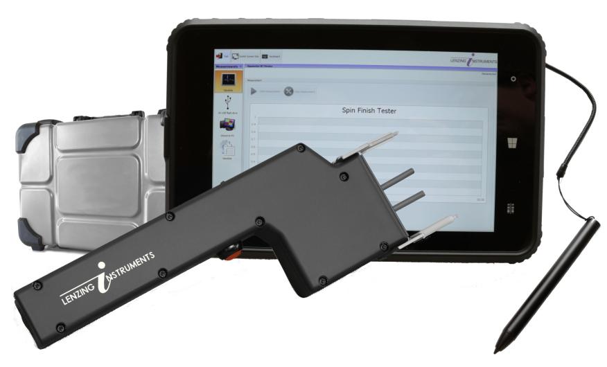 OPUMETER is a handheld instrument, which is used to measure the spin finish content as OPU% directly on the running yarn after the spin finish nozzle. It may be used for POY and FDY and for any conductive spin finish composition. The yarn just has to be held between the ceramic pins of the instrument for some seconds in order to yield a real-time value of the present spin finish concentration. It is a relative measurement, referring to the conductivity of the spin finish on the passing yarn.