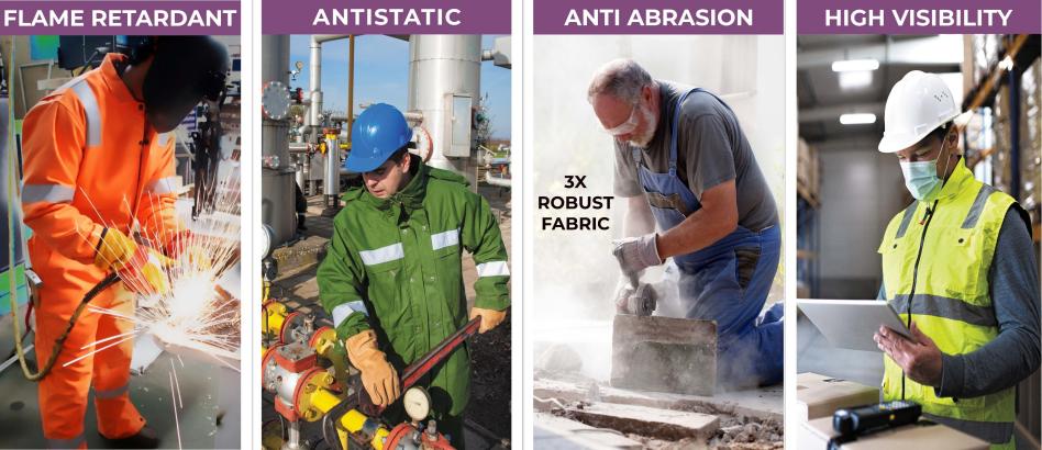 Flame Retardant: Our protectwear fabrics treated with fire-resistant chemicals are capable of withstanding flames and high temperatures and reducing the risk of burns in case of exposure to flames or heat.