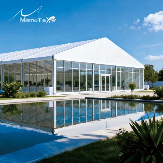 Knife coated marquee fabric with perfect durability, ideal for long-term outdoor use.