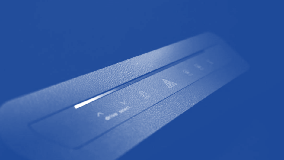 The prototype consists of a translucent TPO foil, which works as a touch interface. On the back of this foil, a printed mask is applied with symbols corresponding to the desired buttons. These symbols are printed in a way that is not visible when there is no back light. When the light source is activated, the symbols will be revealed, thereby revealing the buttons to the user.